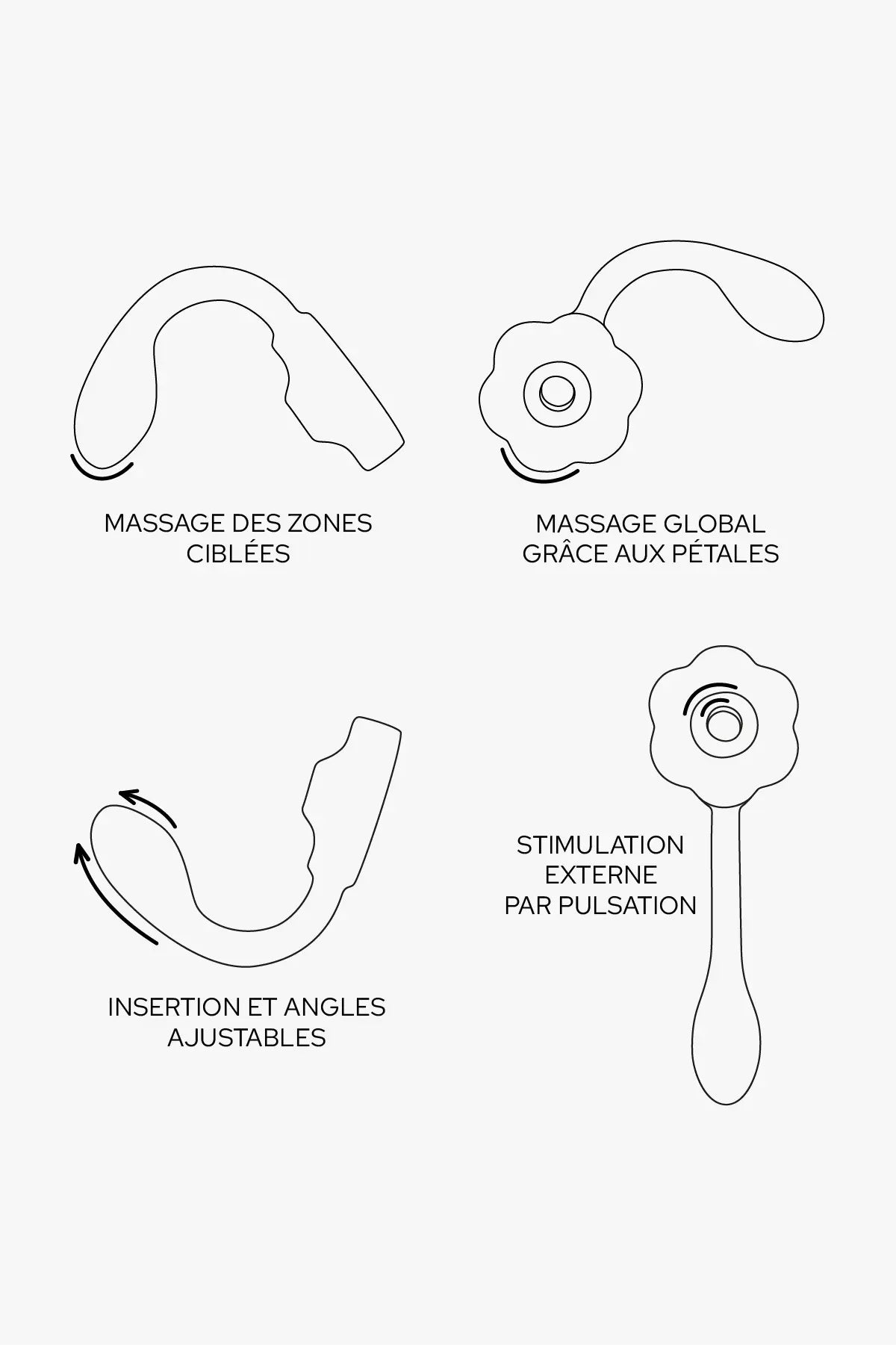 A diferencia de los estimuladores clásicos, Daisy no solo se centra en el clítoris. Gracias a las suaves vibraciones de sus pétalos, ofrece una estimulación difusa y envolvente, creando una sensación amplia, intensa y completamente inmersiva.